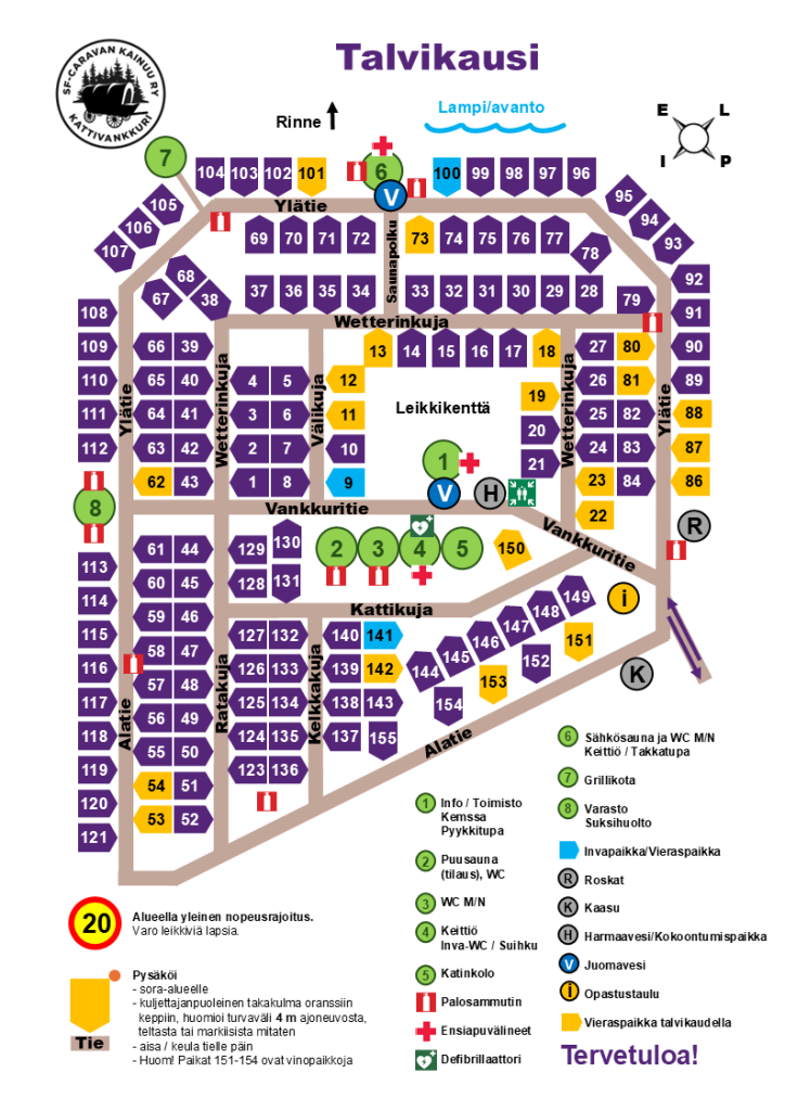HUOM! Paikat 151 – 154 ovat vinopaikkoja. Suositellaan asuntoautoille.